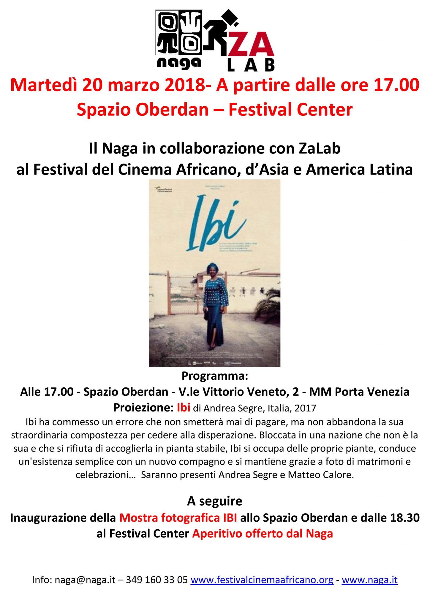 Ore 17:00, Spazio Oberdan, proiezione del film Ibi, di Andrea Segre, a seguire inaugurazione dell’omonima mostra fotografica e dalle 18:30 aperitivo offerto dal Naga.
